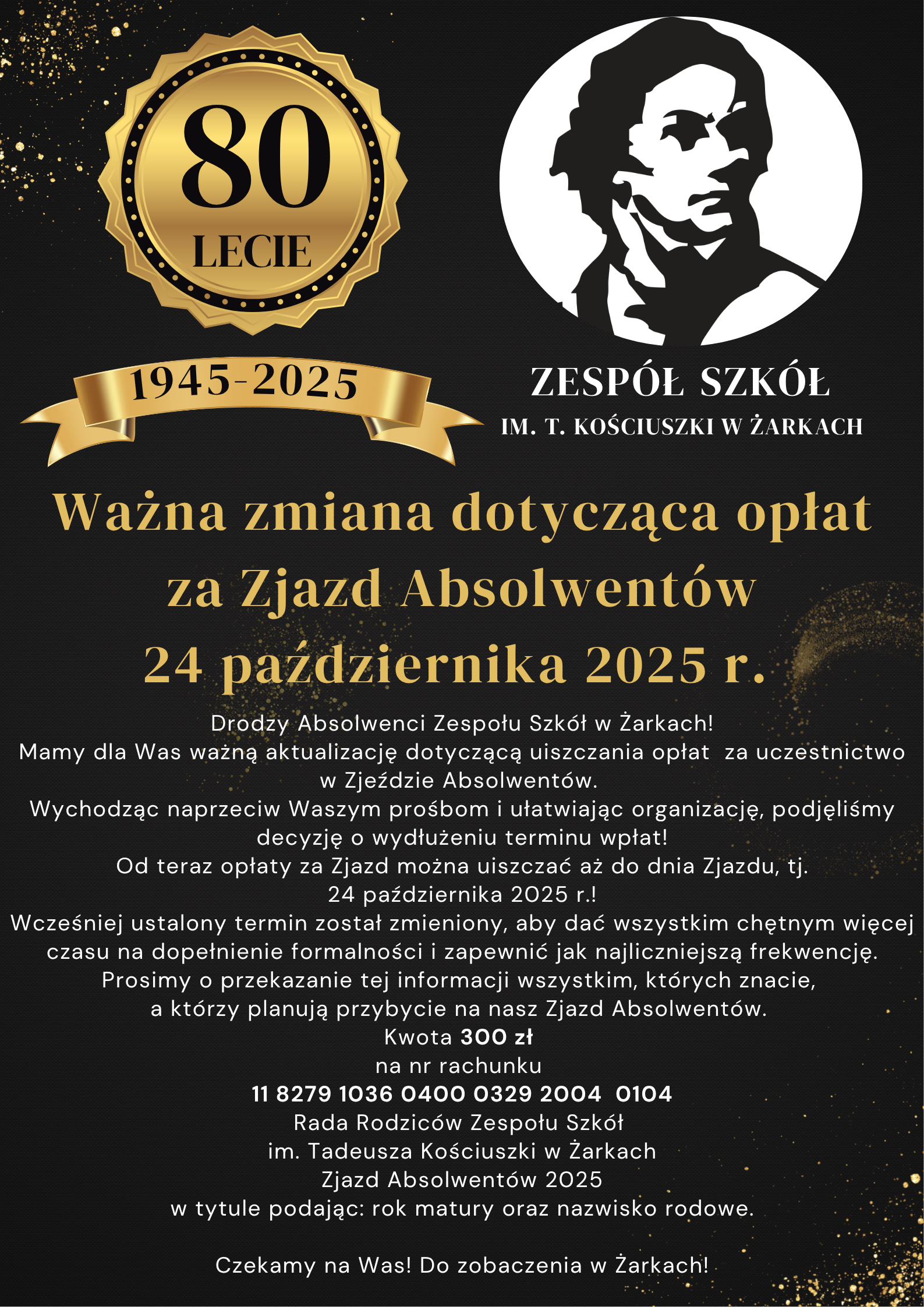 Mamy dla Was ważną aktualizację dotyczącą uiszczania opłat za uczestnictwo w Zjeździe Absolwentów.